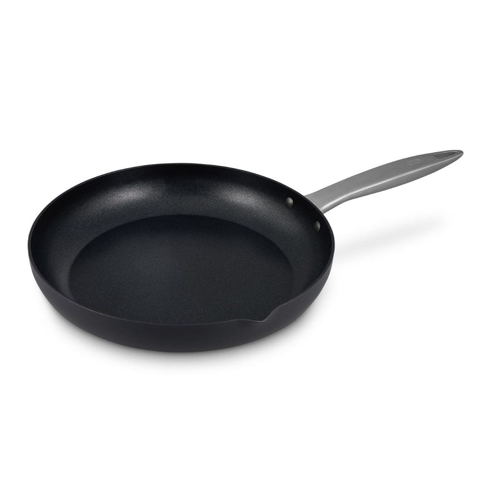 Zyliss best cookware yet! This frypan features advanced PFAS free non-stick Swiss technology by Ilag (Xeradur 5) that delivers superior non-stick performance and healthier cooking. With the hard anodized body (made with recycled aluminium) and a stainless steel base it is suitable for all cooktops including induction. Features a pouring lip and is metal tool safe. Suitable for up to 230 degree in the oven.