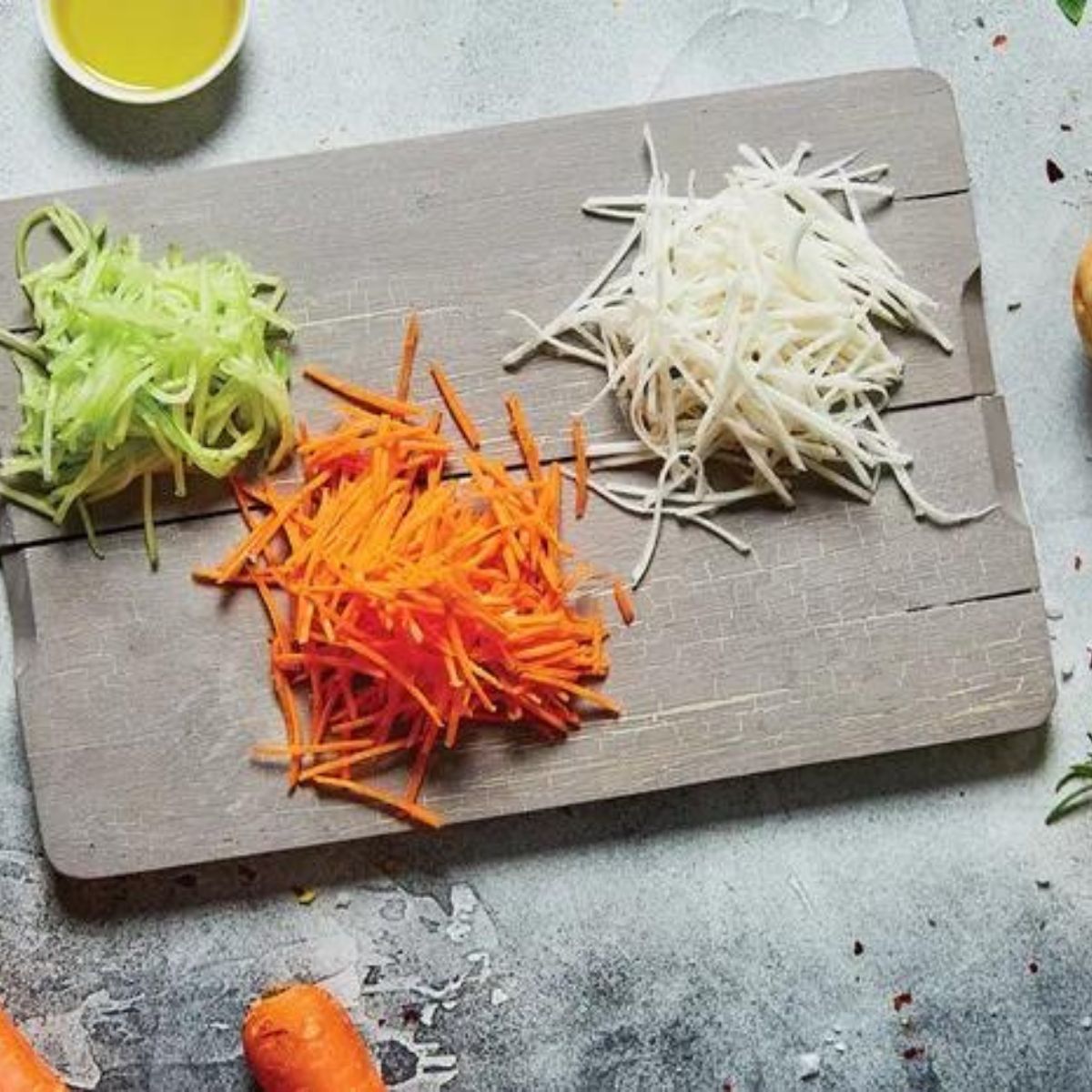With the original Borner Roko Grater you can cut fruit and vegetables into fine thin julienne strips. The julienne slicer cuts root vegetables such as carrots, celery, parsnips or kohlrabi, but also potatoes or cucumbers can be grated and processed into fine julienne strips. The double-sided blade rows cut large quantities in the shortest possible time, as cutting can be done in both directions. We recommend using the original Borner Safety Food Holder.