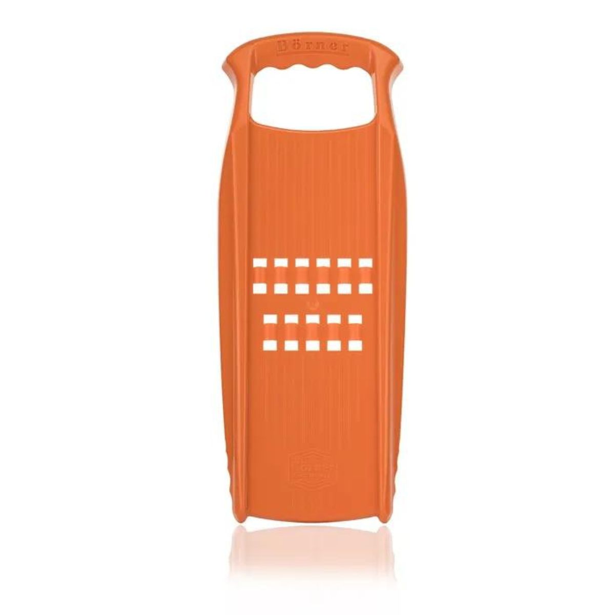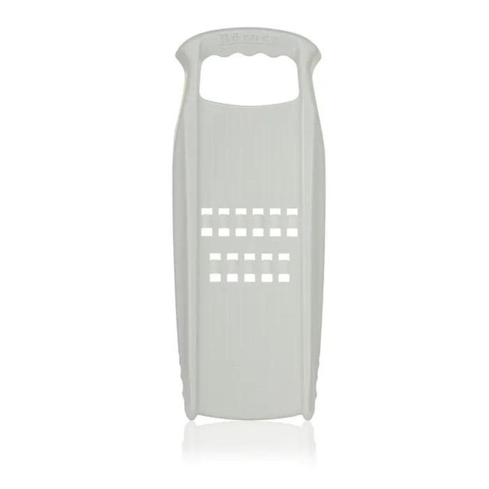 The original Borner Rosti grater turns potatoes, other vegetables and cheese into fine strips. Perfect for swiss potato rosti or courgette pancakes. After use, the Rosti Grater can be easily rinsed under water. We recommend using the original Borner Safety Food Holder.