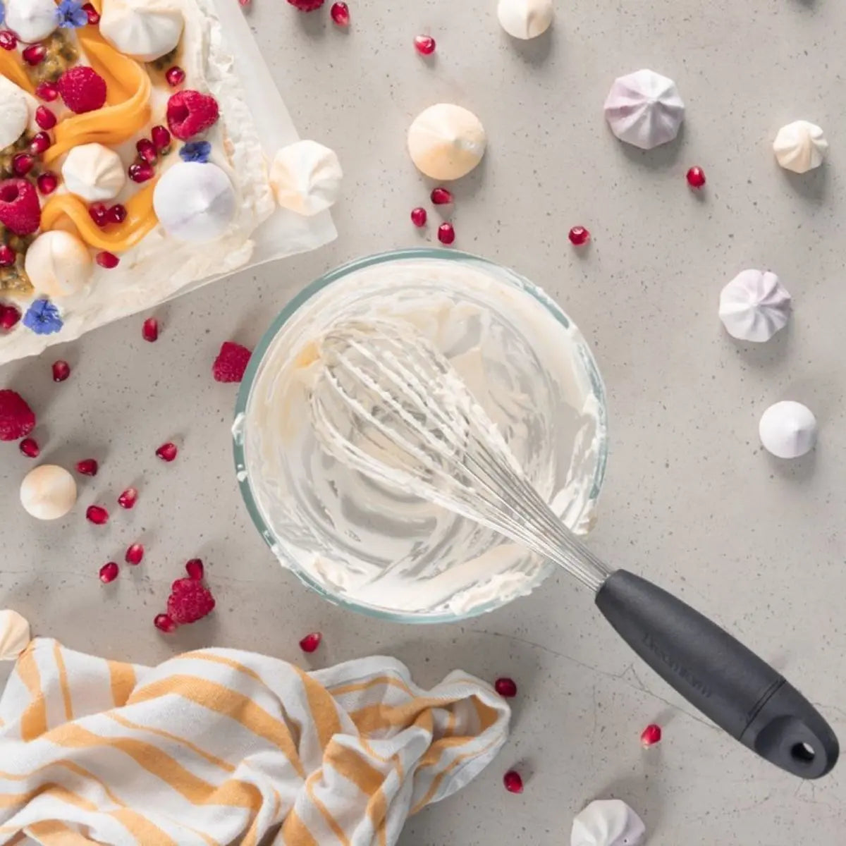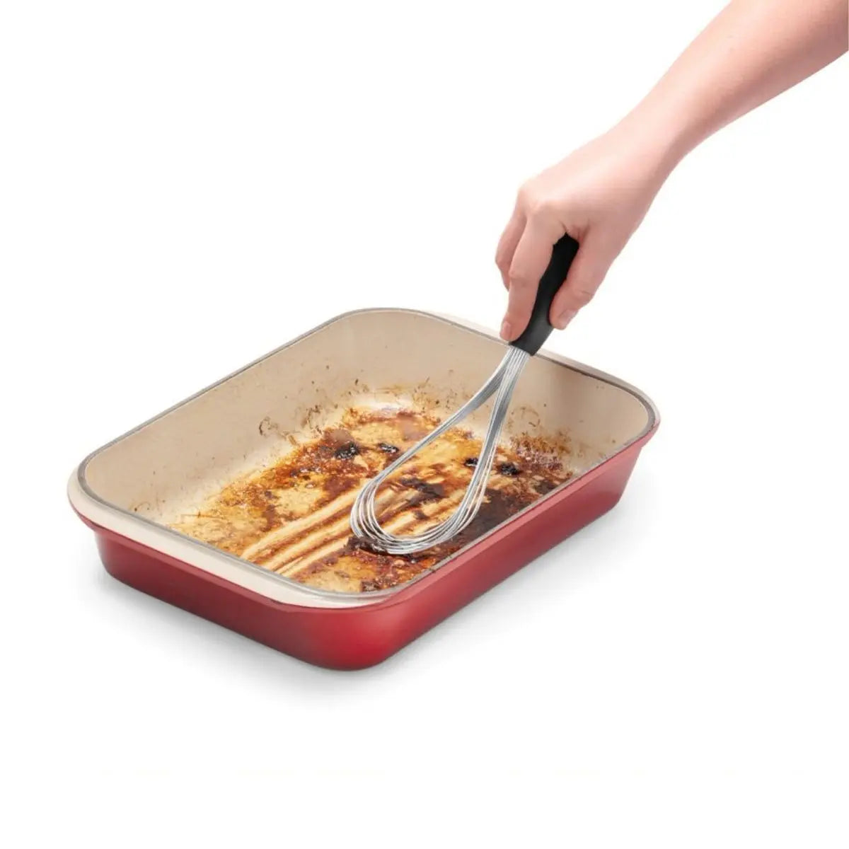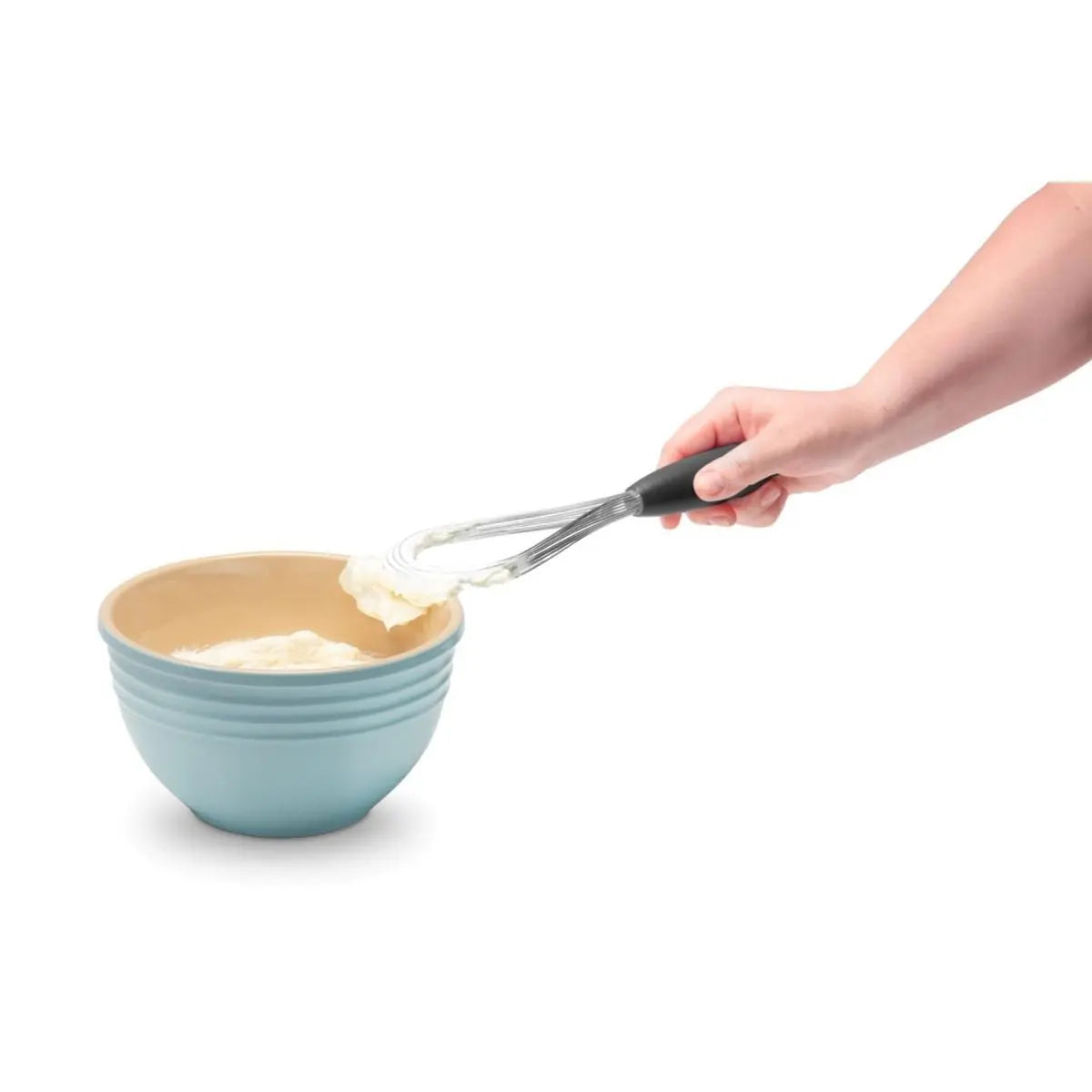Flisk folds completely flat for space-saving storage that won’t get tangled up with other tools in your utensil pot or drawer. To clean, simply twist Flisk into a flat whisk, scrape off excess ingredients, and put it in the dishwasher. No disassembly, and done in no time at all.