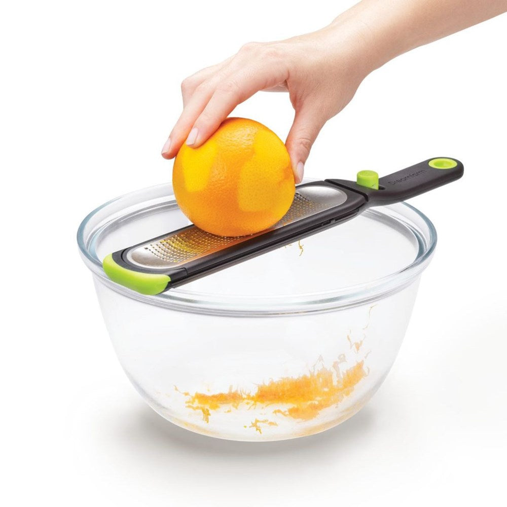 - A clean slate - instantly cleans and clears itself of any clinging zest with the push of a button.