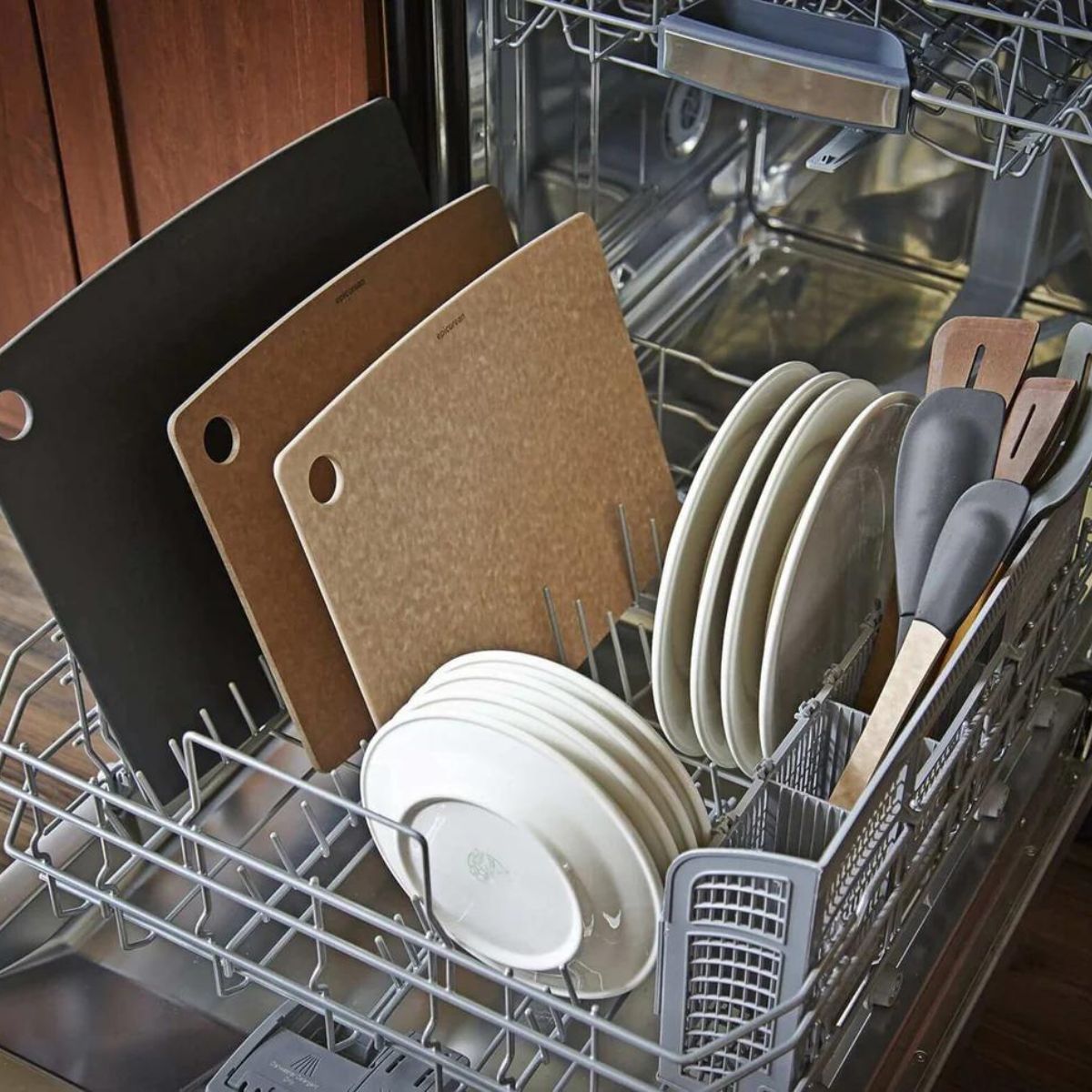 The Epicurean Kitchen Series Boards are the original Epicurean cutting boards! Their simple shape features a handy hang hole; every board is dual-sided while being thin, lightweight, and dishwasher-safe. Different sizes and three colour options allow for the perfect board choice.