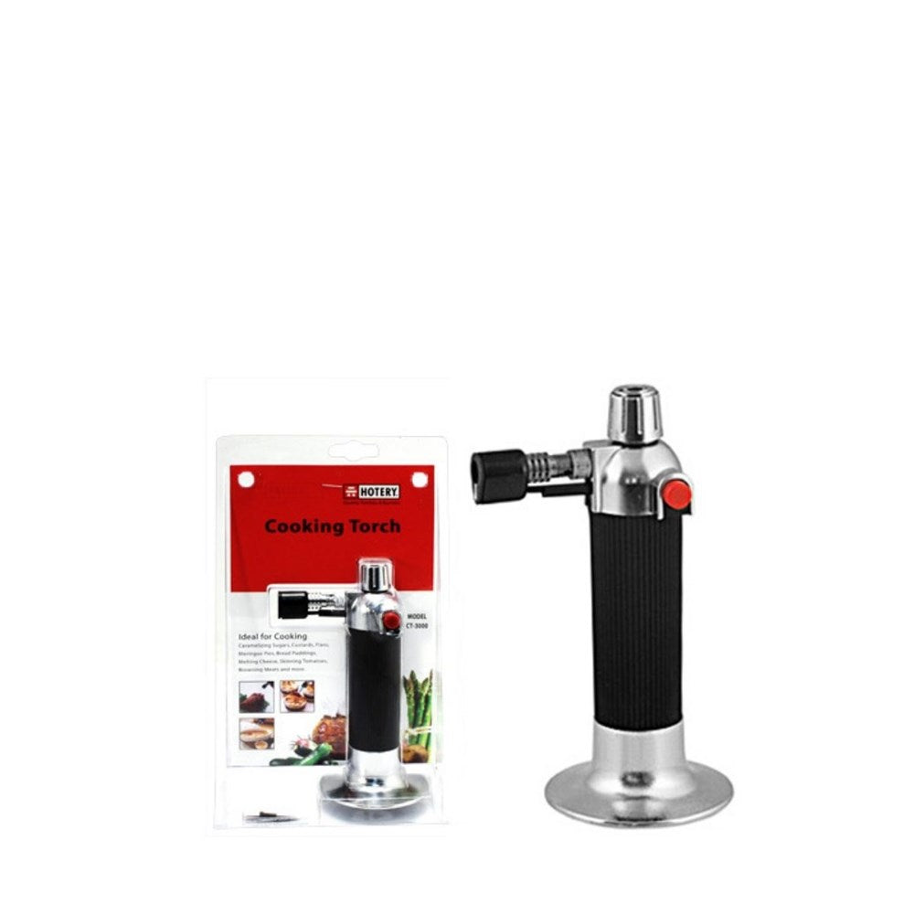 Hit that Creme Brulee, Caramelised Onions or finish that Lemon Meringue pie off. Good for skinning tomatoes and peppers. This Cooks blow torch is a valuable piece for the kitchen.