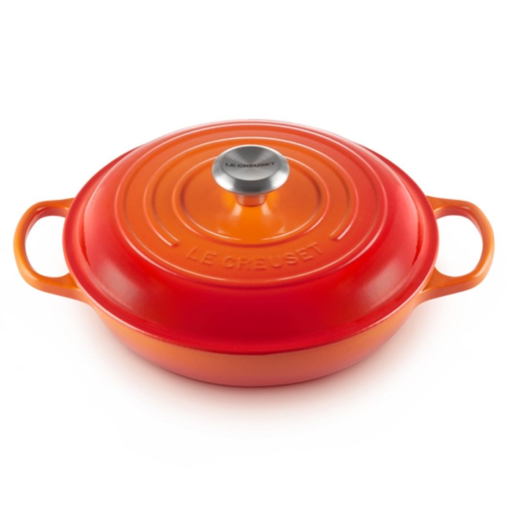 Crafted at Le Creuset's original French foundry, these cast iron pieces are the stuff of culinary legend. This shallow casserole is no exception. The large flat shape and shallow sides make it perfect for browning meat and vegetables, simmering casseroles, stir frying and baking. It enhances caramelisation, for moreish mouthfuls.