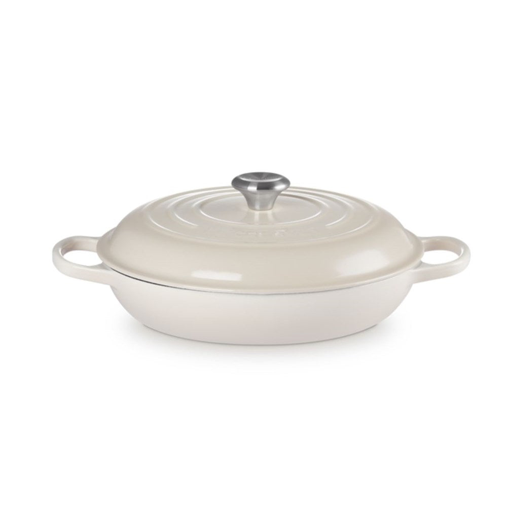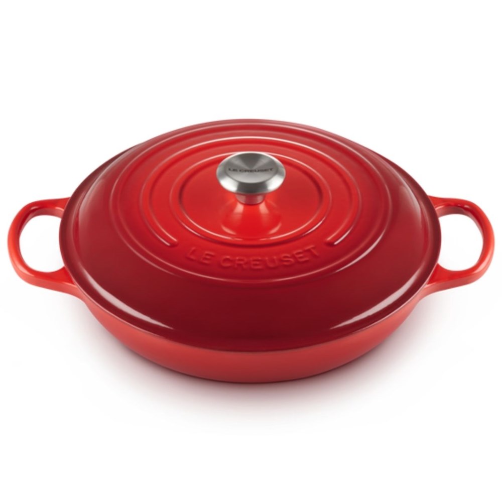 Crafted at Le Creuset's original French foundry, these cast iron pieces are the stuff of culinary legend. This shallow casserole is no exception. The large flat shape and shallow sides make it perfect for browning meat and vegetables, simmering casseroles, stir frying and baking. It enhances caramelization, for moreish mouthfuls.