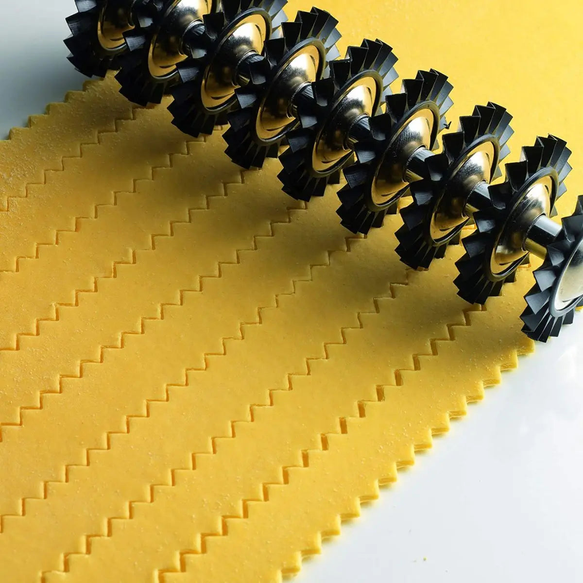 - Prepare many different types of pasta: pappardelle, Reginette, Crostoli, Circles for Agnolotti, Square for Tortellini etc. by simply removing the wheels and widening the 'cut' as required.