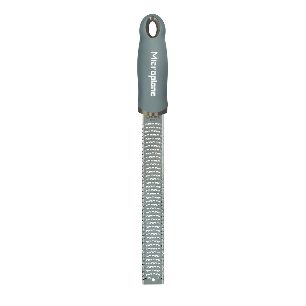 The Microplane Grater is one of those fortunate culinary accidents: What originated as an excellent smoothing tool for woodworkers proved to be an indispensable grating tool for cooks. Improved with a soft-grip handle for a firm, comfortable hold, it has razor-sharp, stainless-steel teeth that allow grating in both directions- saving time and energy.