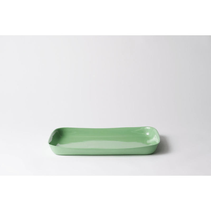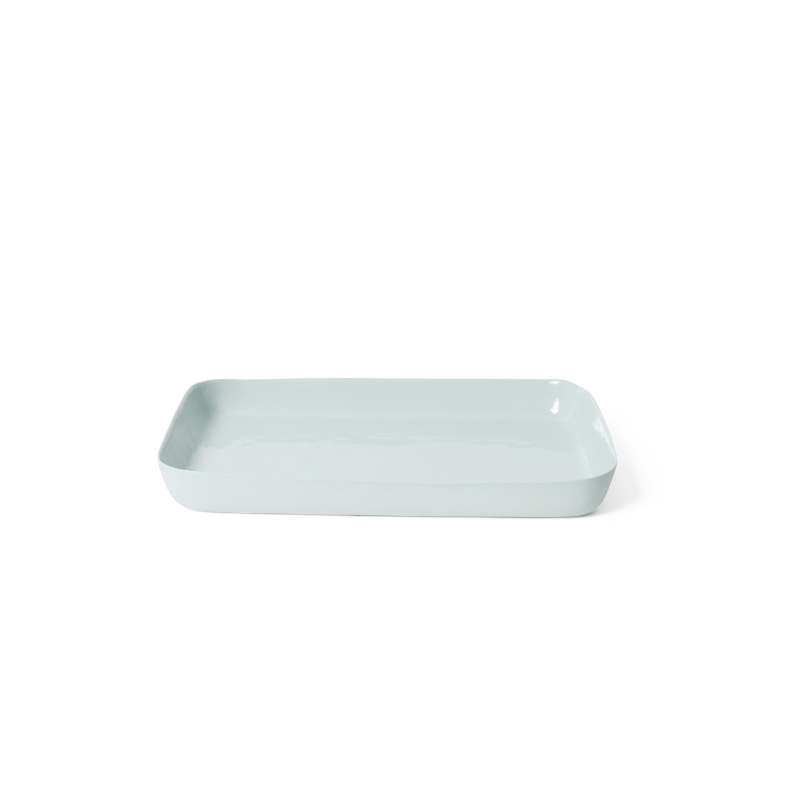 Introducing the Slice Tray, our interpretation of the steadfast traditional quarter sheet baking pan. This rectangular dish is perfect for cooking slab cakes, slices and frittatas or roasting meats and vegetables. It’s elegant form allows for oven-to-table presentation and we’ve found it doubles nicely as a serving tray for afternoon drinks or lazy night dinner platter.