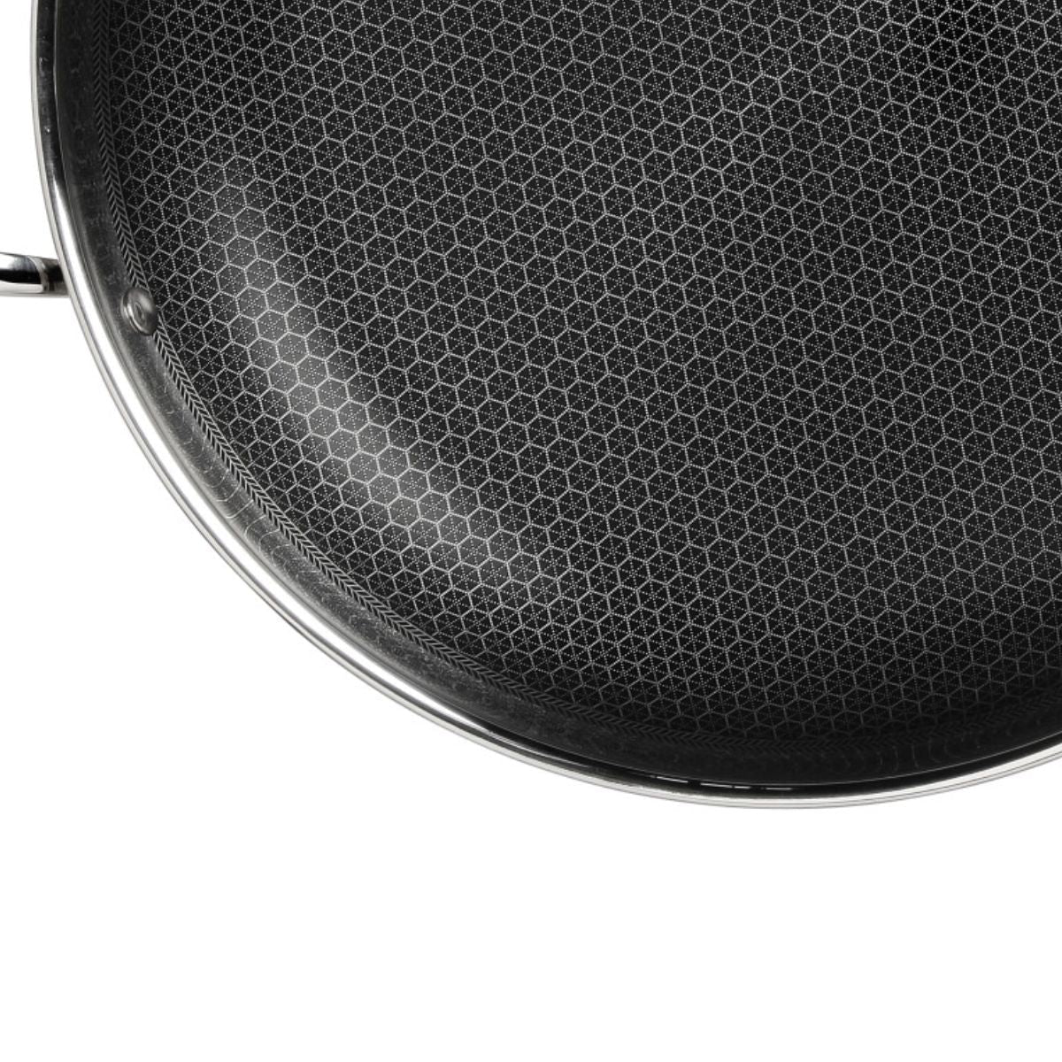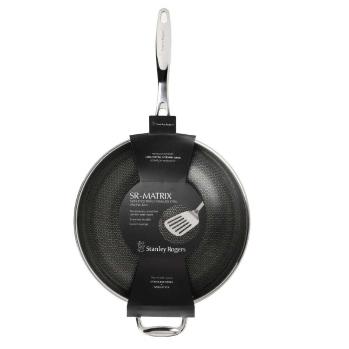 Revolutionary non-stick with protective stainless steel matrix. 100% metal utensil safe. Hybrid performance of stainless steel and non-stick - great for searing and browning with the benefit of non-stick. The rounded bottom of this cookware makes it easier to stir-fry and toss ingredients, while the flat base ensures it sits securely on the stovetop. The long handle on this wok provides a comfortable grip.