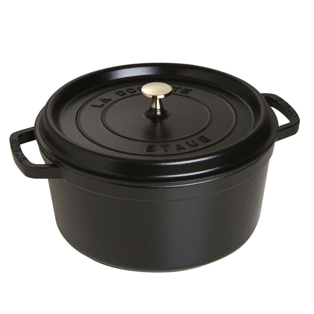 One of Staub's signature dishes, the 'Cocotte' is made in France using a sand mould which is destroyed after each piece is made, meaning every Staub piece is totally unique. The specially contoured lid and its excellent moisture-retention properties. Its self-basting system ensures a continuous rainfall effect evenly over the cocotte’s contents. This guarantees that each ingredient retains its full flavor. Meat does not dry out and vegetables remain tender.