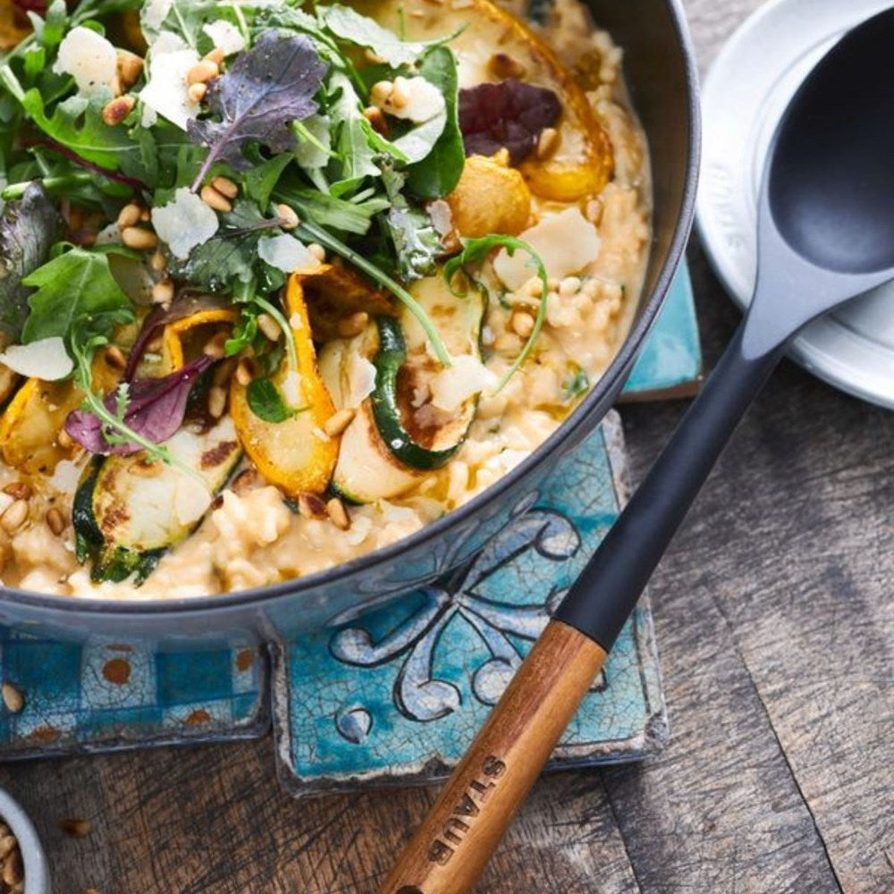 This range of kitchen utensils by Staub is the perfect match for any Staub cocotte. In fact it's perfect for any kitchen with its unique and attractive Staub rustic design. Made of black matte silicone and acacia wood its comfortable and ergonomic design means it sits perfectly in the hand. Get it in one of yours today and you won't be disappointed.