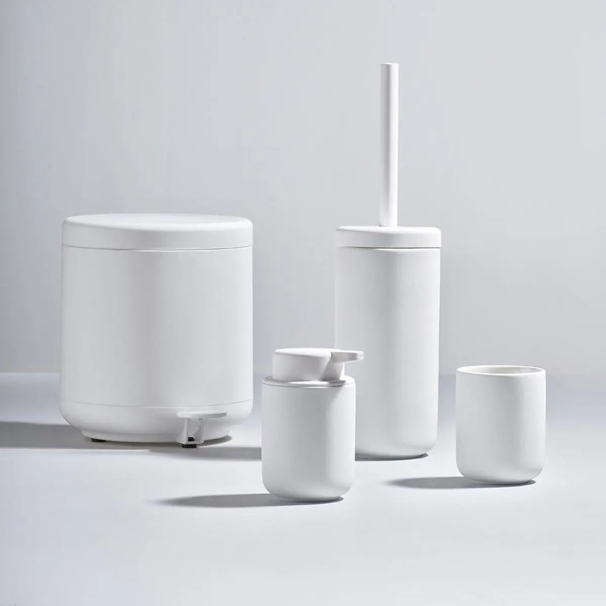 The toilet brush in the Ume bathroom series is equipped with a practical inner container for easy disposal of any excess water. The brush has a handy length and slides easily into its place in the container. The VE2 designer trio is the force behind the superbly proportioned elements in the series.